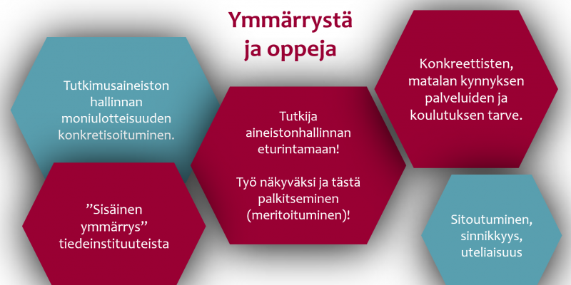 Epätyypillisen ja monimuotoisen tutkimusdatan hallintaan ei ole ollut saatavilla helppokäyttöisiä kokonaisratkaisuja. Ratkaisuja erityisesti humanististen alojen aineistonhallintaan haettiin Tiedeinstituuttien avoin tutkimusdata -hankkeessa.