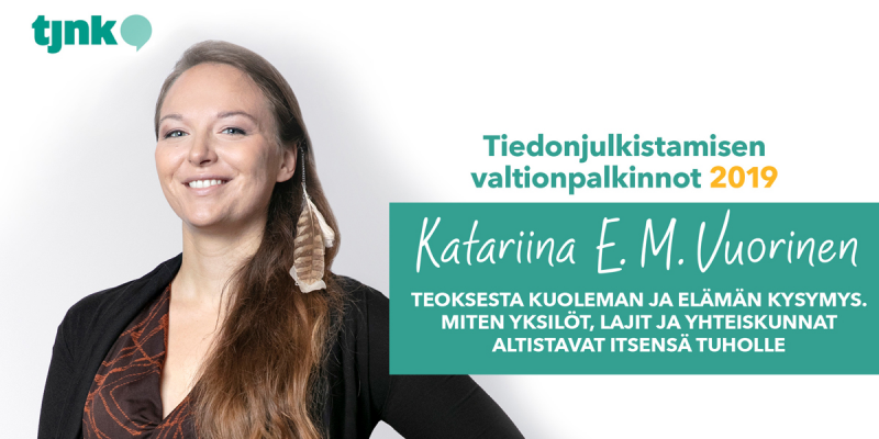 Tieto- ja tieteiskirjailija Risto Isomäki palkittiin elämäntyöpalkinnolla erittäin merkittävästä ja pitkäaikaisesta tiedonjulkistamisesta myös taiteen ilmaisukyvyn keinoin maan, meren ja ilmaston tulevaisuuden puolestapuhujana.